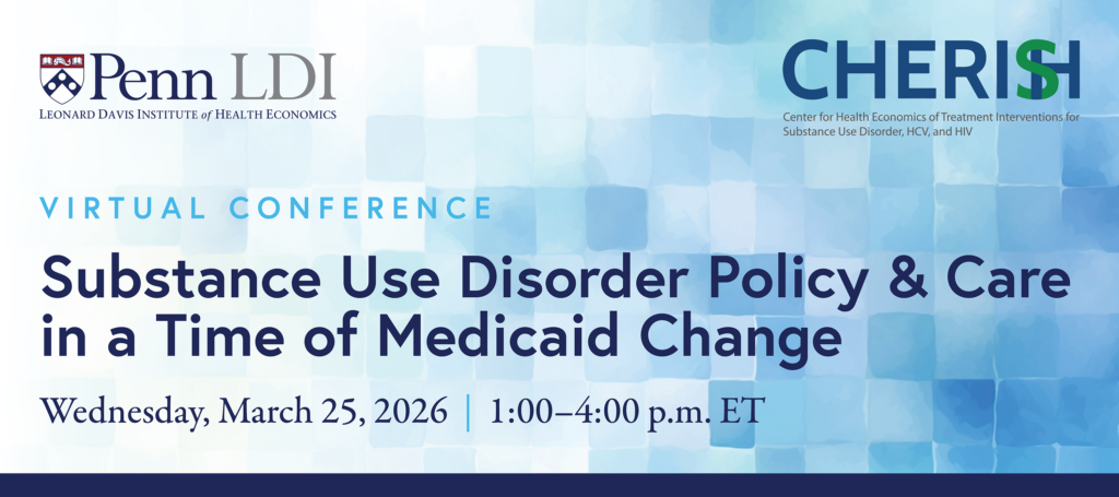The Center for Health Economics of Treatment Interventions for Substance Use Disorder, HCV, and HIV (CHERISH), and Penn’s Leonard Davis Institute of Health Economics (Penn LDI) invite you to a virtual conference focused on strategies to preserve access in changing times. CHERISH and Penn LDI have gathered policymakers, researchers, and practitioners to explore options to help advance evidence-based SUD treatment under the new rules ahead.