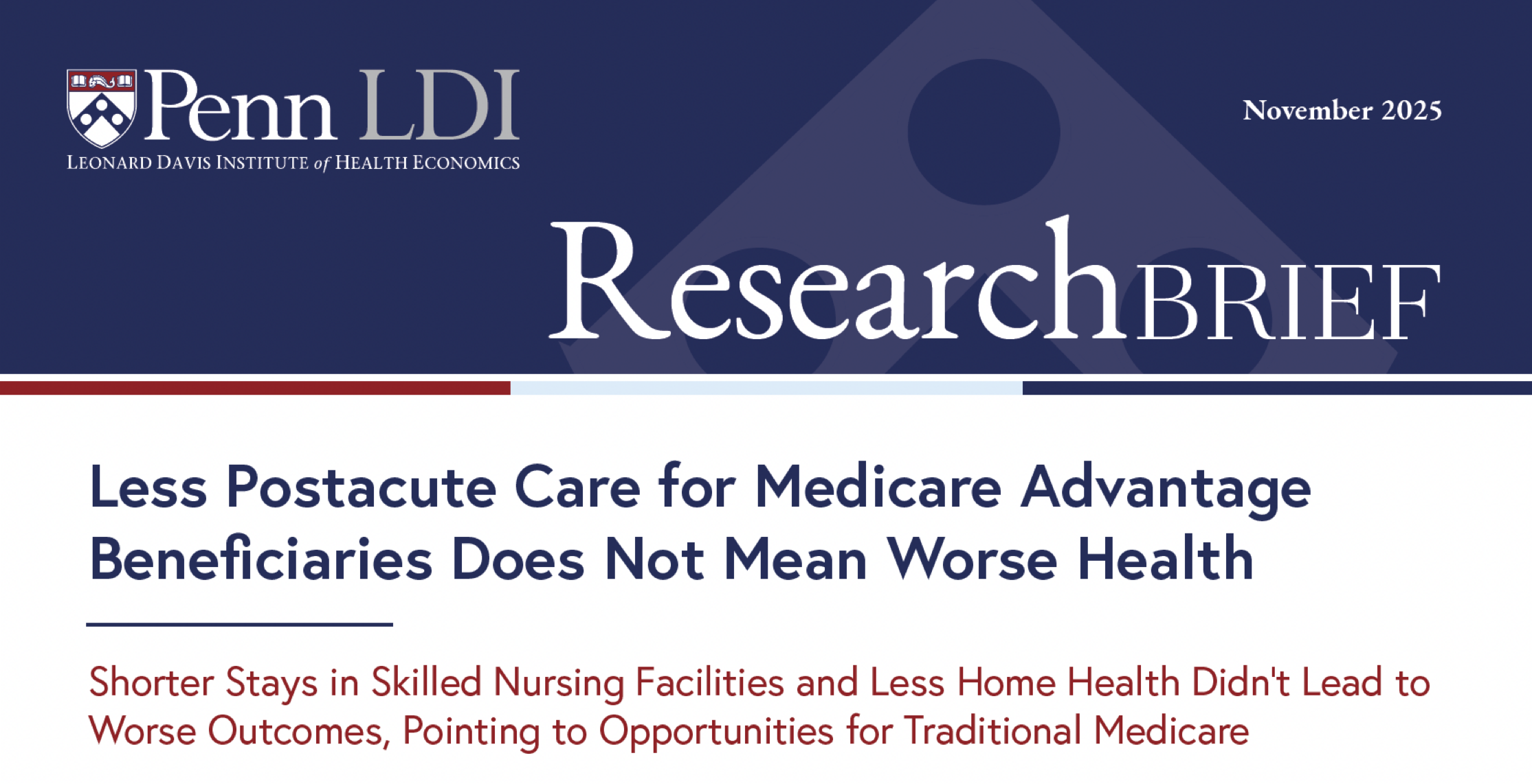Traditional Medicare spends more than $57 billion annually on beneficiaries’ postacute care. In 2024, LDI Senior Fellow Robert Burke and LDI Executive Director Rachel M. Werner, along with colleagues, found that traditional Medicare recipients used more days of costly postacute care than Medicare Advantage beneficiaries. These findings suggested traditional Medicare spending on postacute care could be reduced.